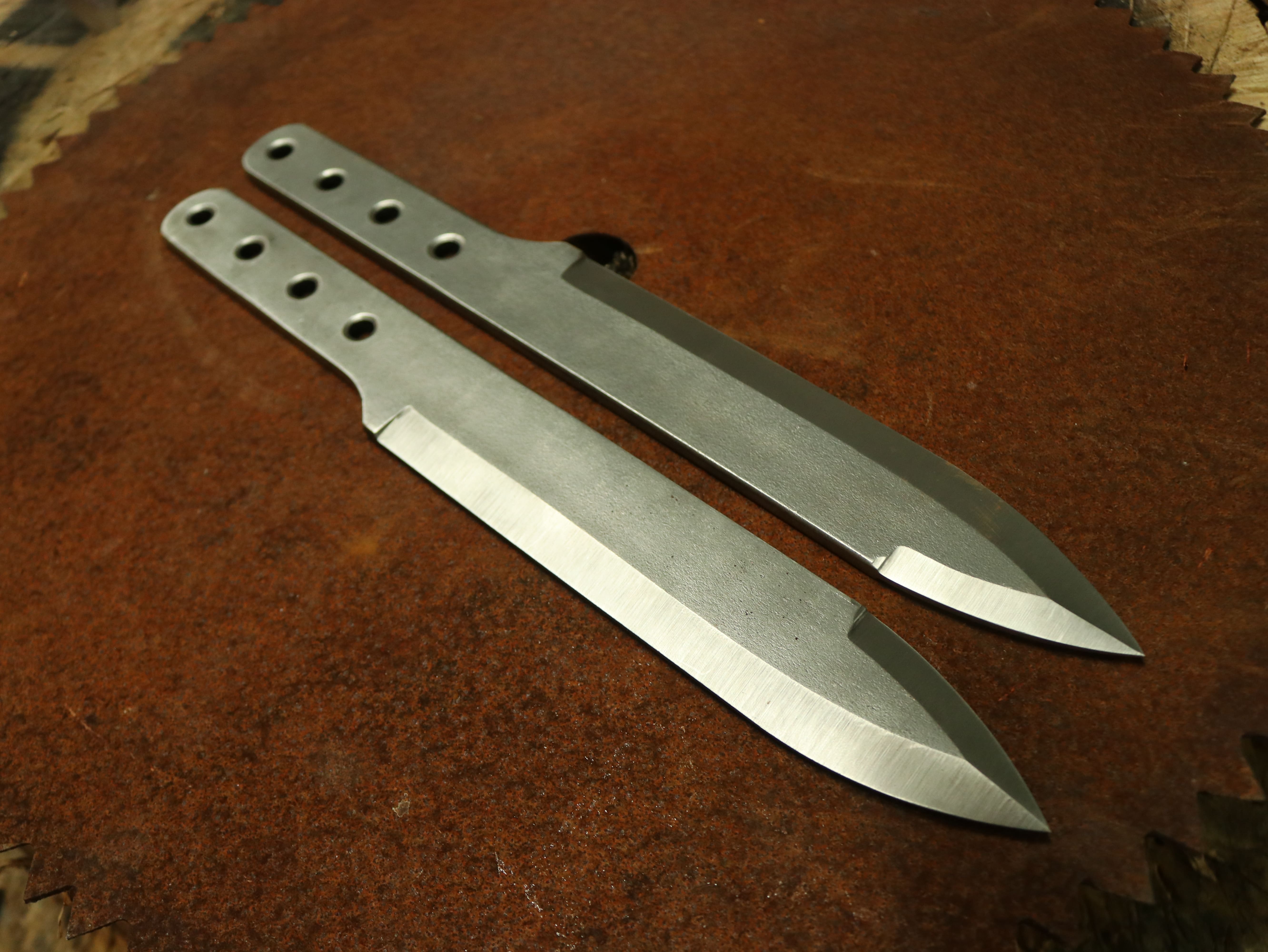 Les lanceurs de couteaux (surtout les compétiteurs), sont en permanence à la recherche d’un meilleur couteau de lancer. Meme si celui qu’ils utilise à l’entraînement est parfait ils finissent toujours par réfléchir à l’améliorer. C’est un besoin reçurent. Comme si quelque part il existait un couteau avec une forme ou un poids, qui nous permette d’être encore meilleur, encore plus précis. Alors on essaie les couteaux des copains on expérimente d’autre formes, d’autre modèle, on dessine également beaucoup de couteaux. Avec toujours cette recherche de la lame qui procurerait une sortie de mains plus précise, une bascule plus évidente, comme un feeling qui enverrait le couteau presque naturellement dans le centre.
