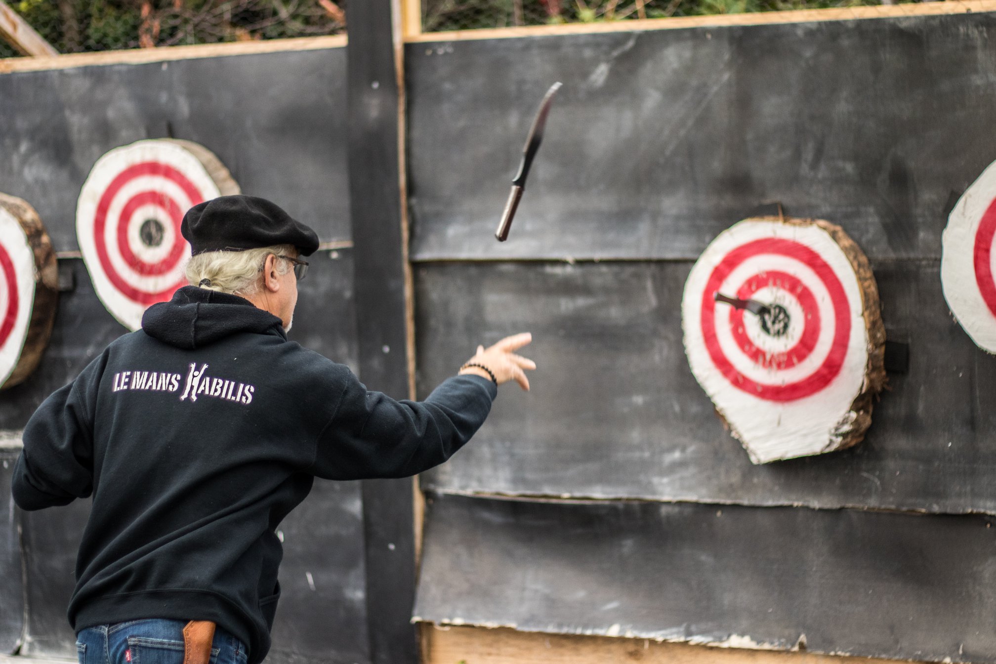 En compétition, les distances pour les épreuves classiques sont le 3m (le couteau fait une rotation), le 5m (deux rotation), et le 7m (trois rotations)